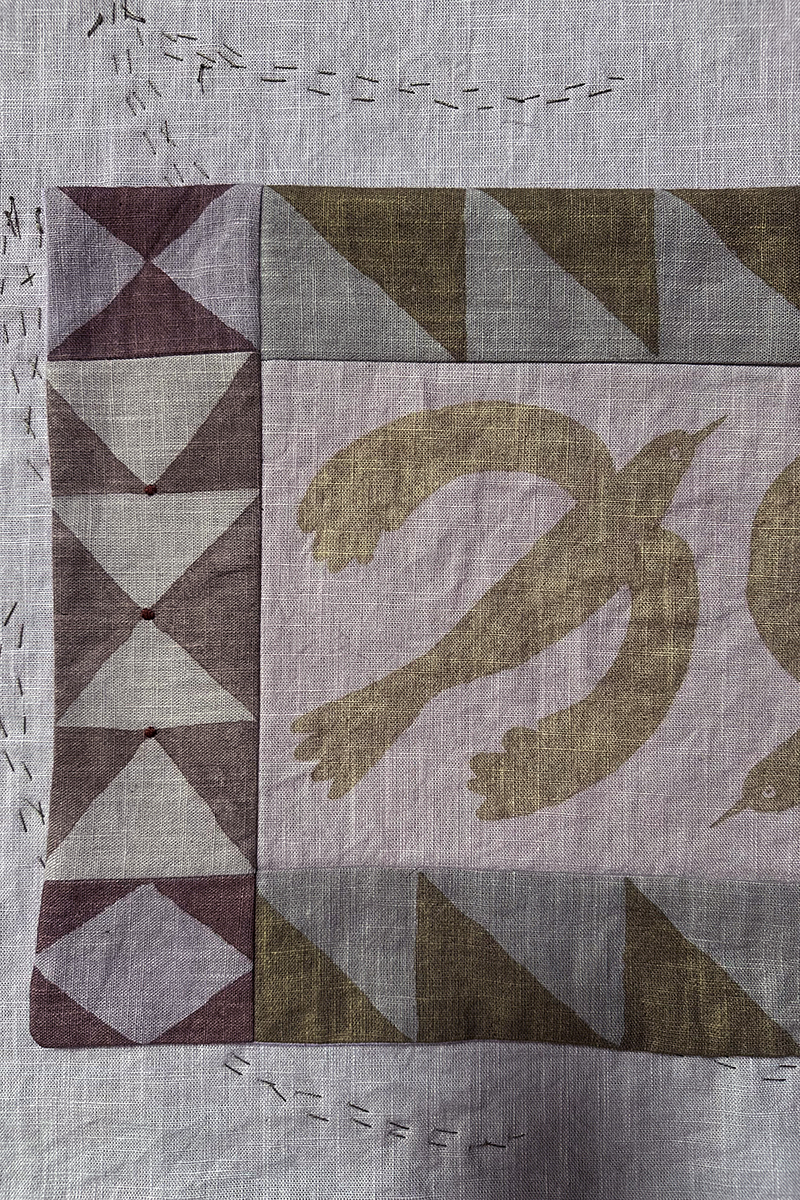 Hand-painted and naturally dyed wall hanging in nature’s colour palette. Each piece is dyed in a different colour and when everything was pieced together I embroidered some details.