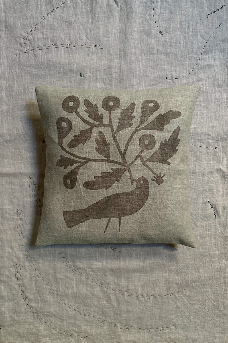 This hand-painted illustration of a little bird holding a branch of marigolds is a tribute to nature. Dyed in soft earthy tones.